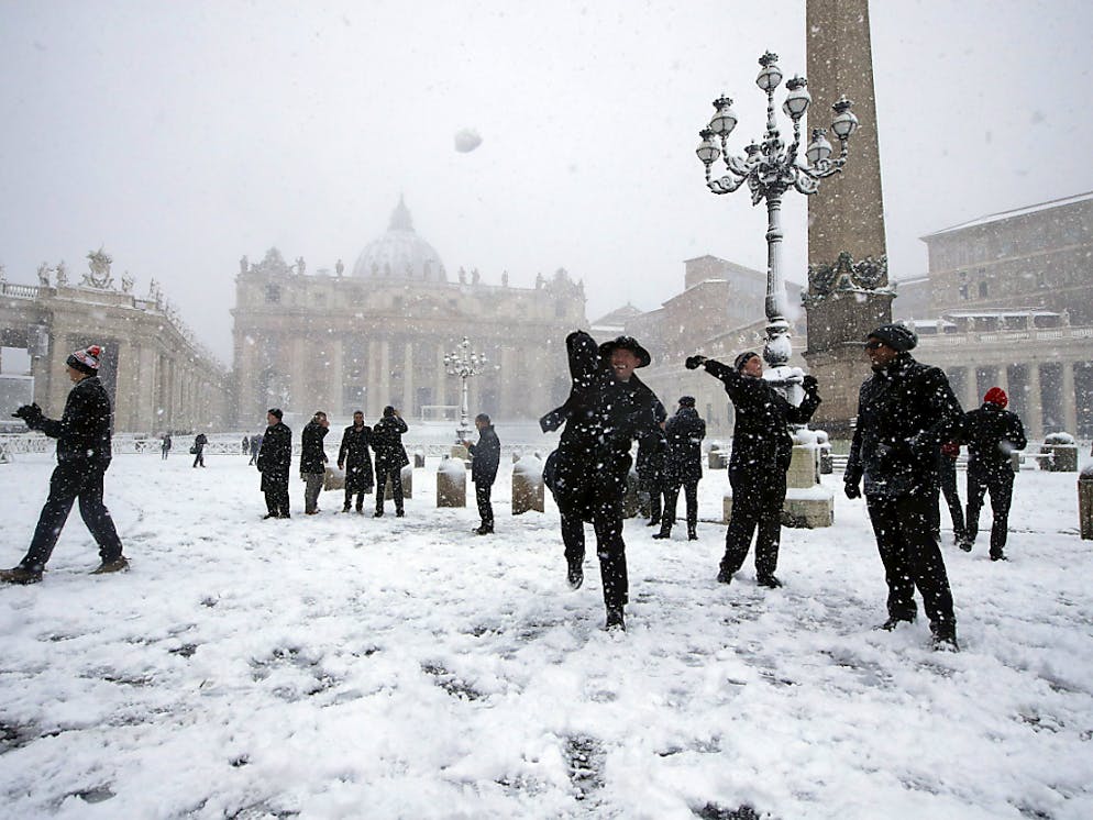Viele Bürgerinnen und Bürger amüsierten sich in der seltenen Schneepracht: Vor dem Petersdom warfen Seminaristen Schneebälle, Kinder holten Schlitten heraus, Hunde spielten auf einem weissen Circus Maximus.