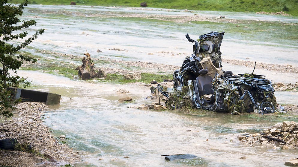 Samedi matin, l'eau montait à plus d'un mètre dans les rues de Dombresson. Plusieurs personnes ont dû être dégagées de leurs voitures, qui se sont retrouvées dans le lit de la rivière ou retournées sur le toit.