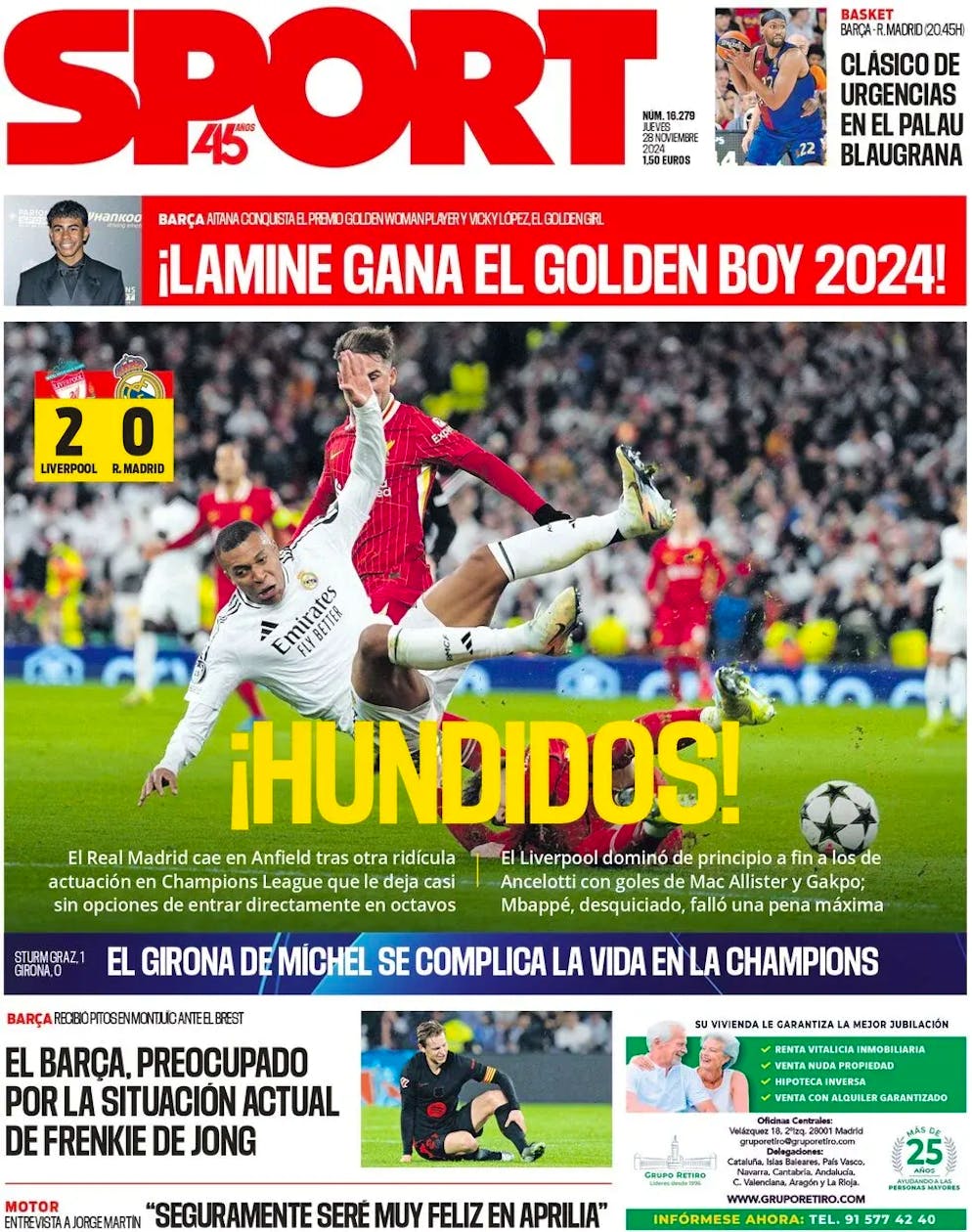 «Kylian Mbappé tauchte an dem Tag, an dem er am meisten gebraucht wurde, nicht auf. Der Franzose trug seine Melancholie gegen eine überlegene Liverpooler Mannschaft unbeteiligt vor. Als Mbappé einen Elfmeter zum Ausgleich vergab, war es das Ende der Madrider Chancen, die nun um die Qualifikation für die Playoffs im Winter zittern müssen. Eine bittere europäische Nacht. Real Madrid hat in Anfield 45 Minuten lang überlebt. Und das war’s. In der zweiten Halbzeit war es dann die harte Realität.»