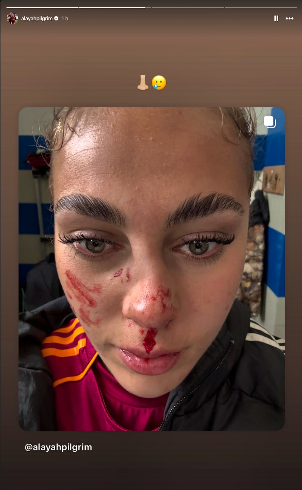 Alayah Pilgrim wird deswegen nicht in das am Montag beginnende Camp des Nationalteams einrücken. Auf Instagram teilt die 22-Jährige in ihrer Story ein Foto der blutigen Verletzung.