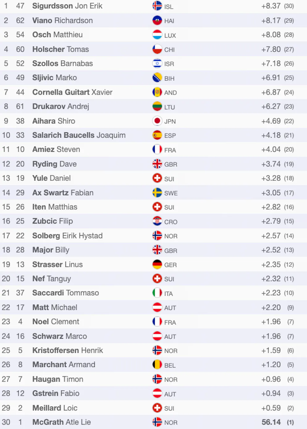 2,52 Sekunden Rückstand für Major und damit Zwischenrang 12. Viel mehr kann man bei diesen Verhältnissen heute nicht rausholen.