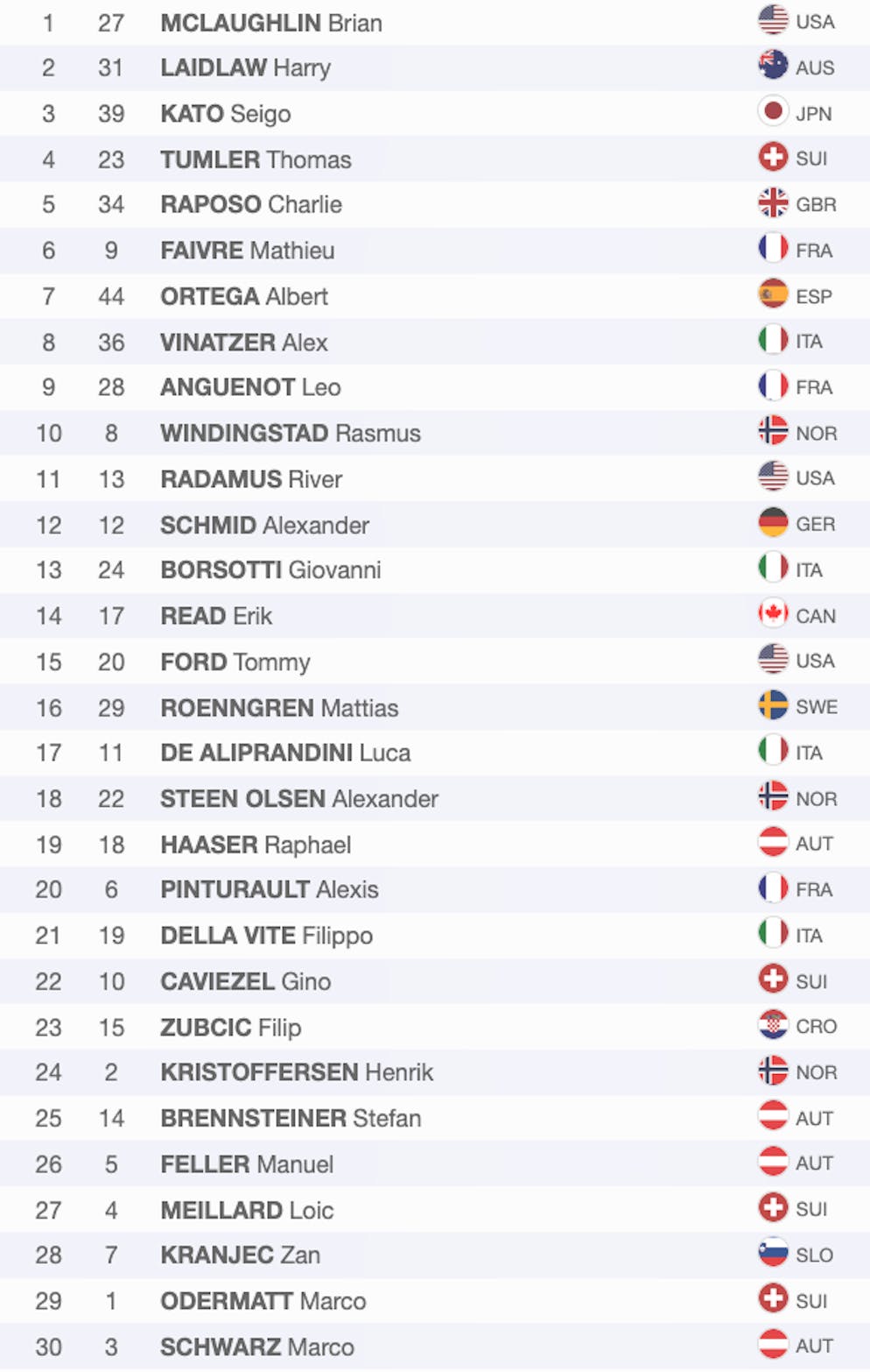 30. nach 1. Lauf