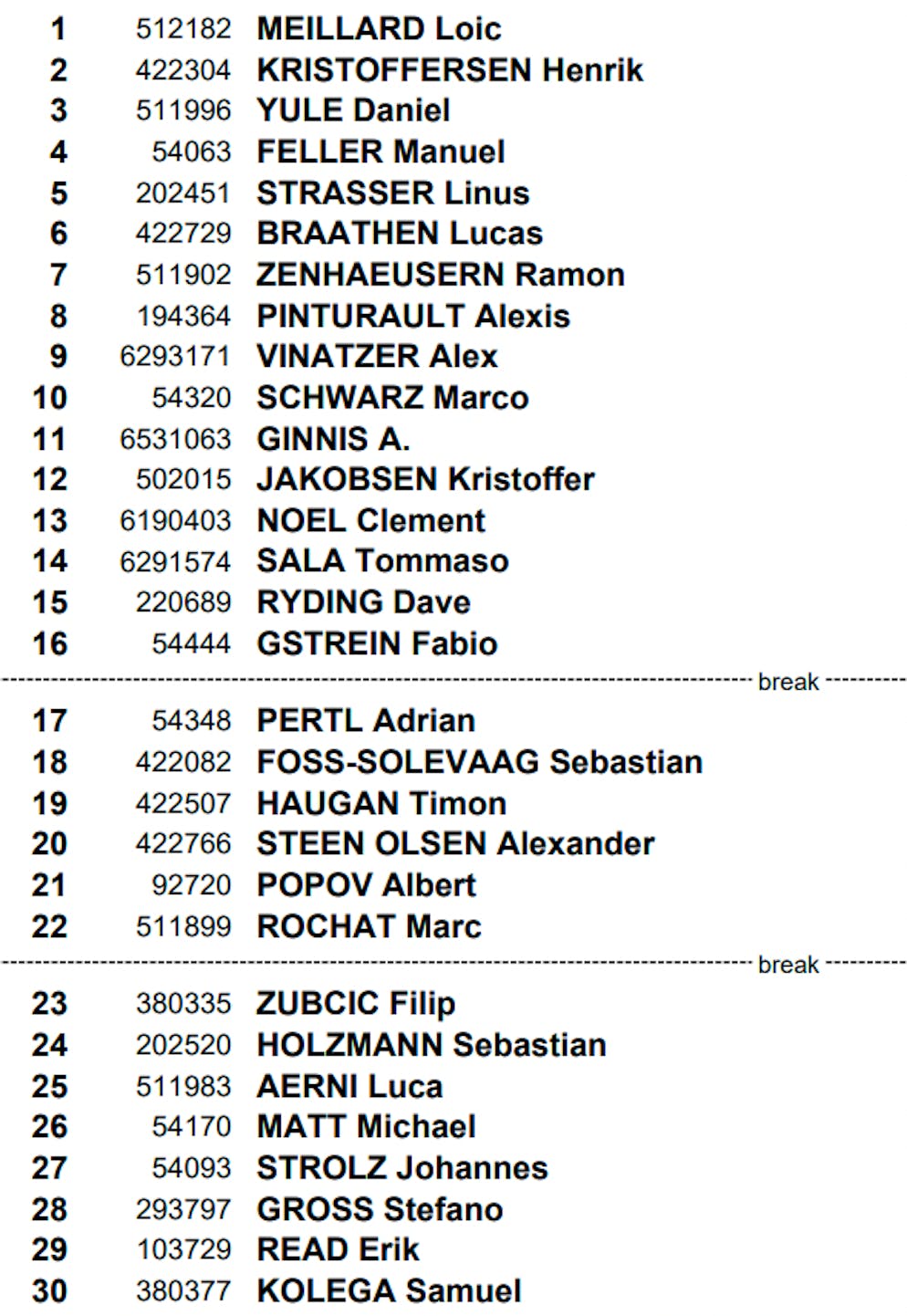 Startliste Top 30