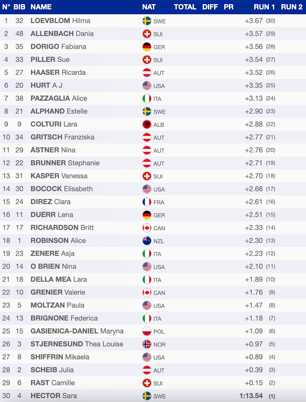 Aus deutscher Sicht war heute nicht viel zu holen. In Abwesenheit der pausierenden Emma Aicher wurde Lena Dürr auf Rang 21 beste DSV-Athletin und war damit natürlich nicht zufrieden. Erfreulich war hingegen, dass Fabiana Dorigo es ins Finale geschafft hat und auf Rang 25 einige Zähler sammeln konnte.