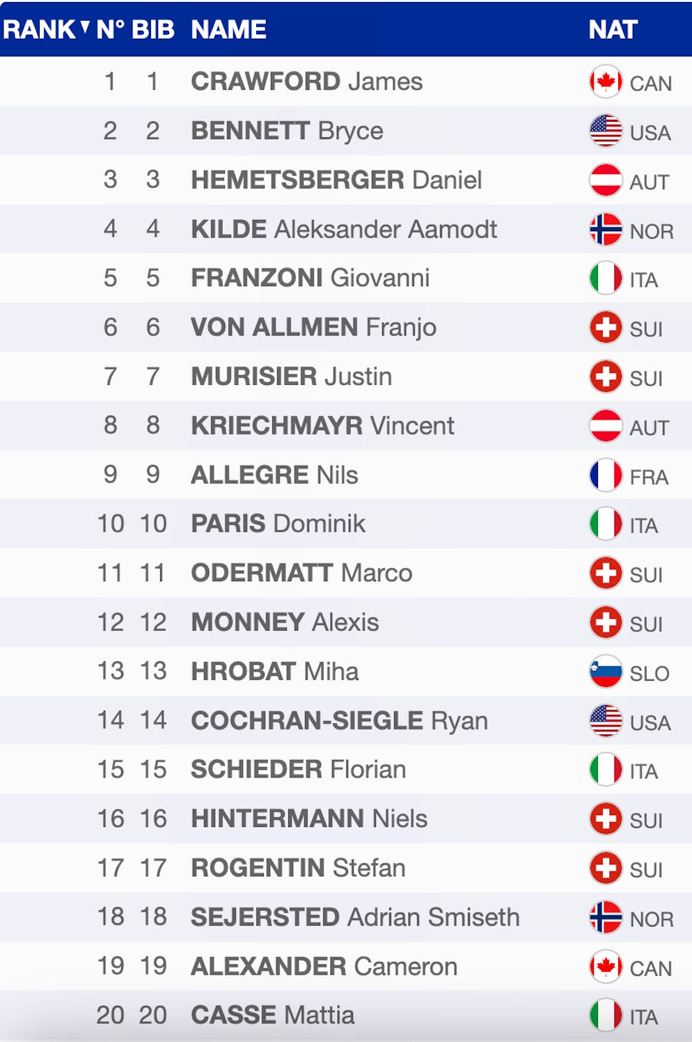Schieder zeigt eine starke Trainingsfahrt und liefert sich mit seinem Landsmann ein Kopf-an-Kopf-Rennen. Vor dem Ziel bremst er stark ab, landet mit 72 Hundertsteln Rückstand dennoch auf Zwischenrang 3.