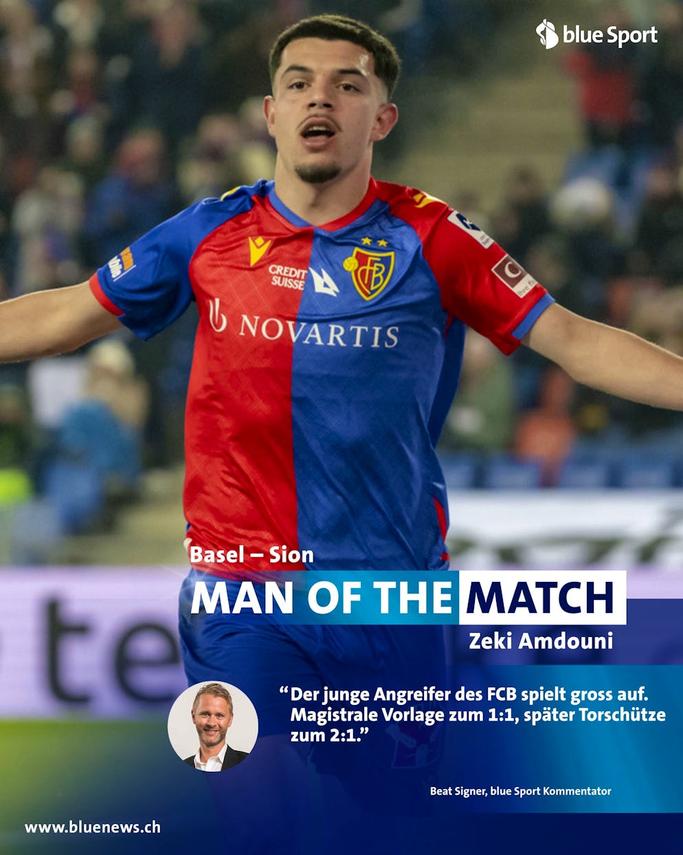 Amdouni und Zeqiri blieben nach der Pause gefährlich, speziell wenn sie Raum zum Kontern vorfanden, was in der zweiten Halbzeit öfters der Fall war. Mit etwas Glück schloss Amdouni in der 61. Minute einen schnellen Angriff nach einer diskutablen, weil womöglich irregulären Balleroberung von Zeqiri, mit dem 2:1 ab. Keine zehn Minuten später bereitete Zeqiri mit einem Pfostenschuss, dem zweiten an diesem Abend, unfreiwillig das 3:1 von Hugo Novoa vor.