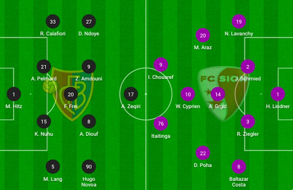 Sion: Lindner; Lavanchy, Schmied, Ziegler, Baltazar; Araz (74. Karlen), Grgic, Poha (74. Halabaku); Cyprien; Chouaref, Itaitinga (84. Bua).