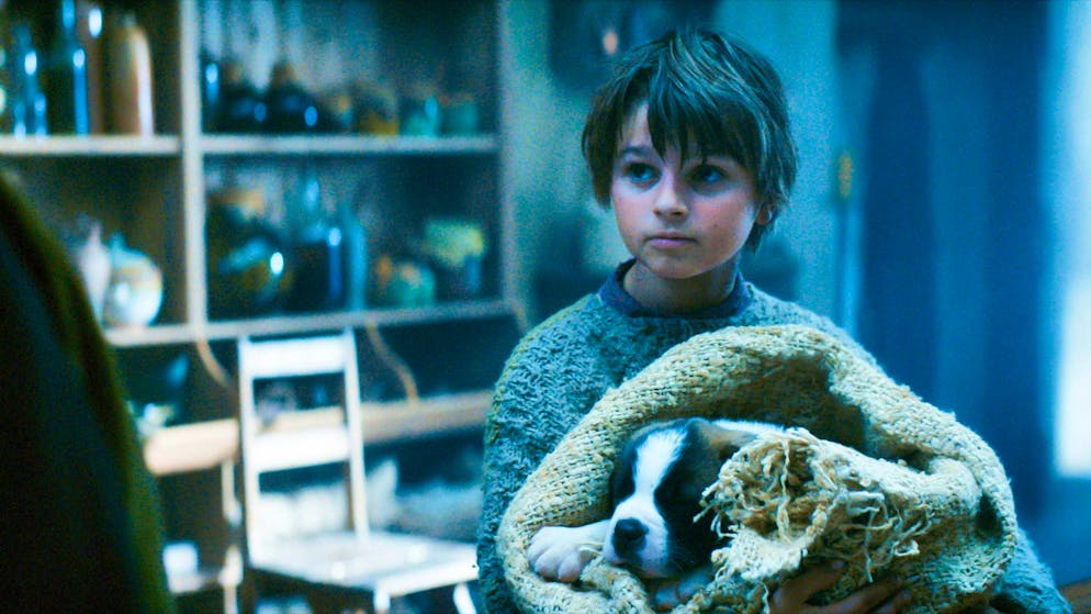 Young Georg and the St. Bernard dog Barry: the film focuses on a friendship that develops in the rugged mountain world of the Great St. Bernard Pass.