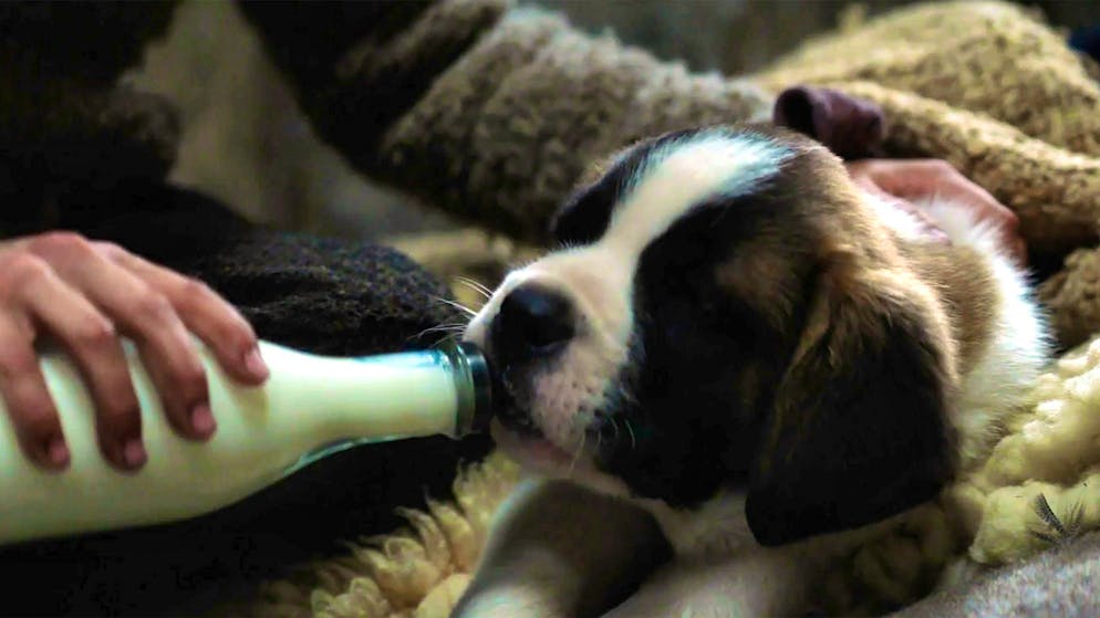 The boy raises the helpless puppy with a bottle, as he is too weak, and saves him from certain death. The foundation stone for a deep friendship is laid and how could it be otherwise, Barry later becomes a lifesaver himself.