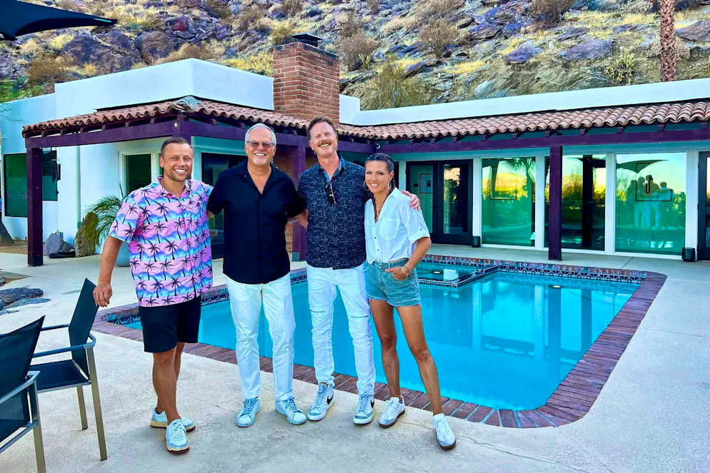 Presenter Viola Tami (l.) and TV colleague Jan Fitze (r.) visited Gene Simmons from Kiss at home in his villa. Also in the picture are his wife Shannon (2nd from left) and Swiss architect Roger Kurath (2nd from right)