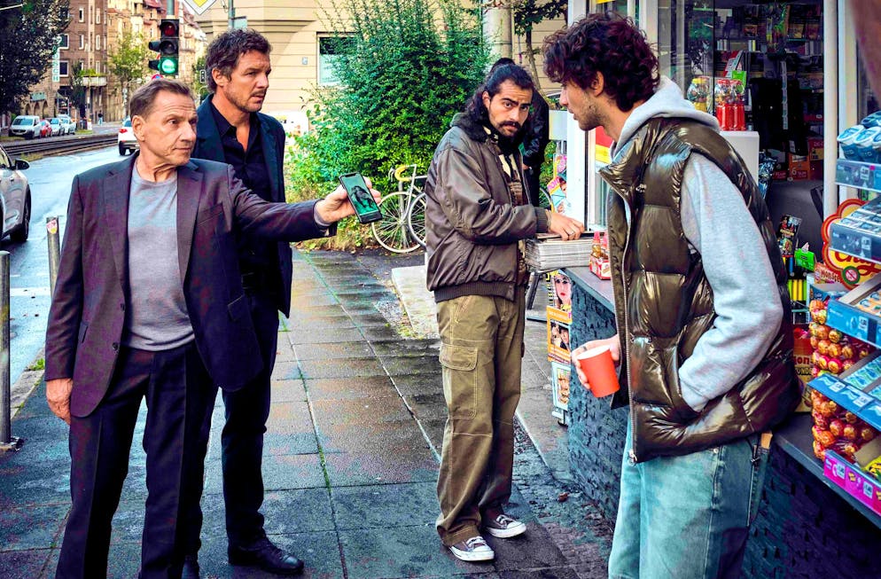 Thorsten Lannert (Richy Müller, left) and Sebastian Bootz (Felix Klare) interview witnesses who saw Pony buying cigarettes on the evening of the crime.