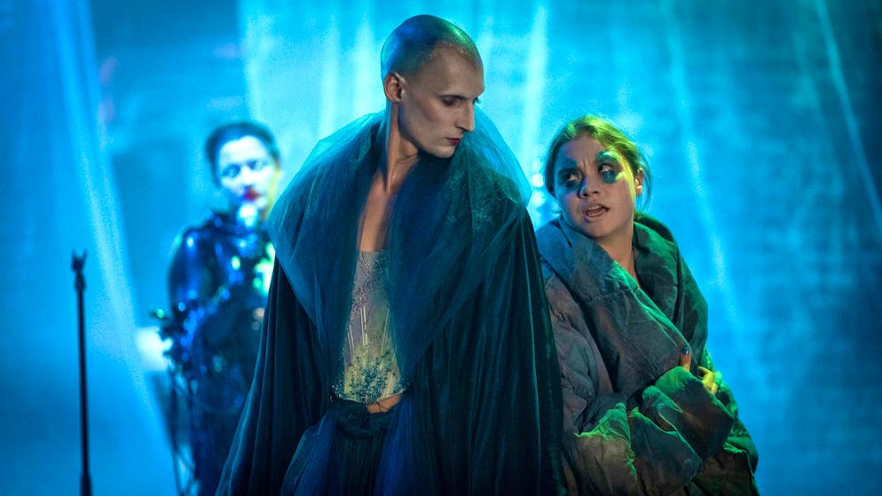 The eccentric singer - and man - David Deycks (Marcel Jacqueline Gisdol) and Valerie Schmitt (Hannah Schiller) are rehearsing for a metal opera.