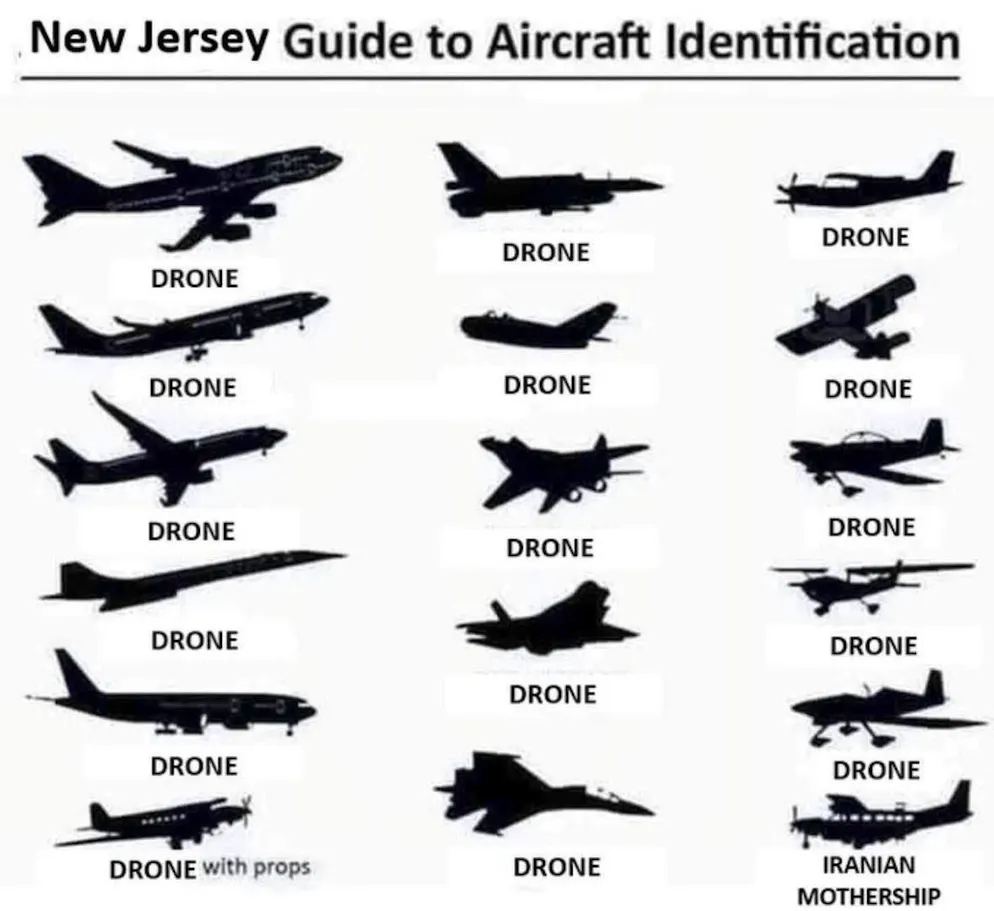 The satirical "New Jersey Guide to Aircraft Identification" gets to the heart of the matter. Whether Boeing 747, Concorde, F-35 or propeller Cessna: every silhouette is simply labeled "drone". Only one aircraft is listed as the "Iranian mother ship".
