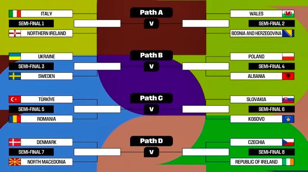 Kosovo, the runners-up in the Swiss qualifying group, will first fight for a place in the final away against Slovakia. In the potential final, the Kosovars would face Turkey or Romania, in which case they would play at home.