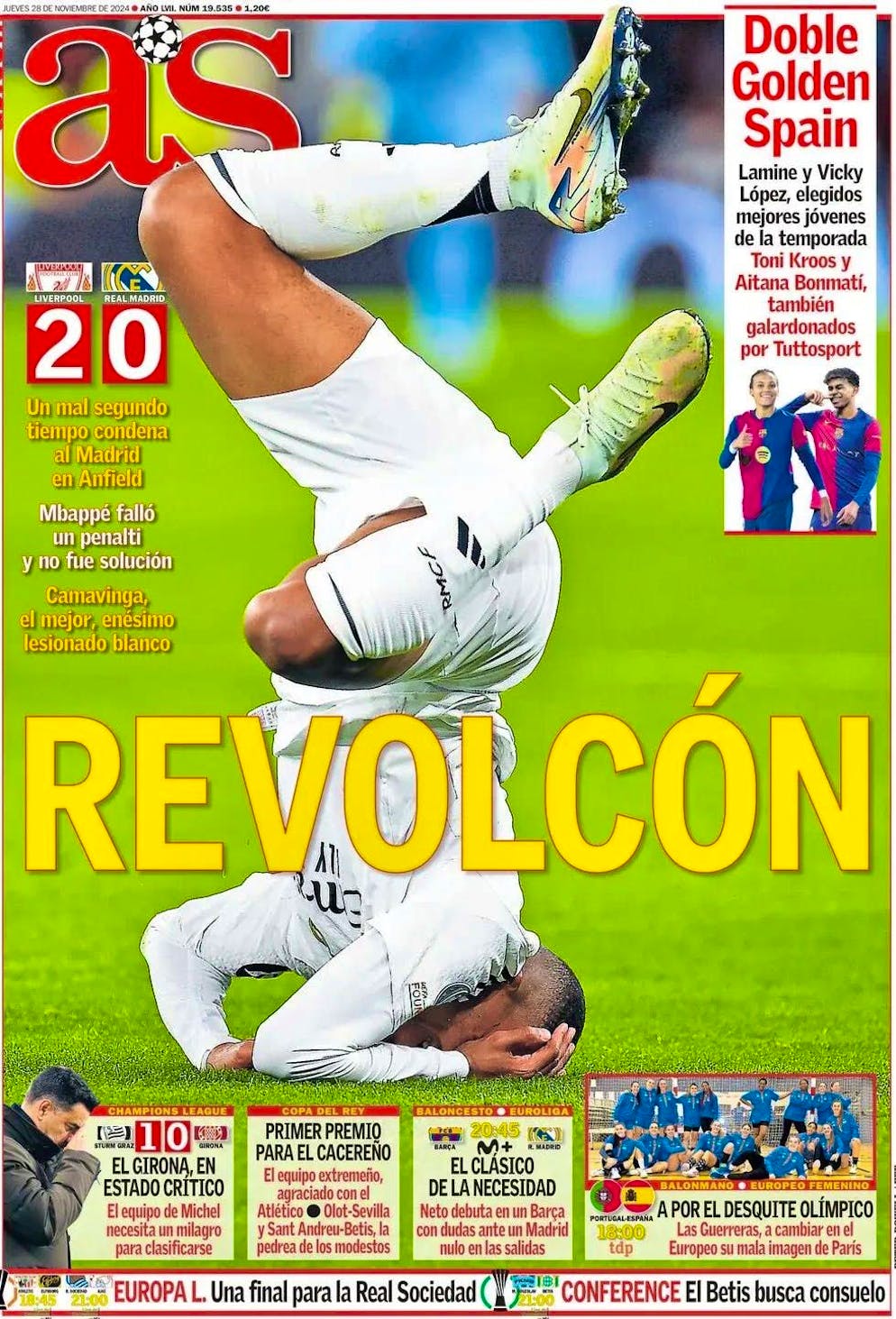 "Madrid were not able to survive the test at Anfield. Their Champions League season is now a little more complicated, having suffered a third defeat that leaves them little margin for error. Liverpool had waited more than a decade for revenge and finally got it against a Madrid side with plenty of absentees for whom the game was one size too big. Vinícius was sorely missed by the Blancos and Mbappé played a supporting but negative role. In addition to his poor play, he missed a penalty after an hour that could have been the equalizer."