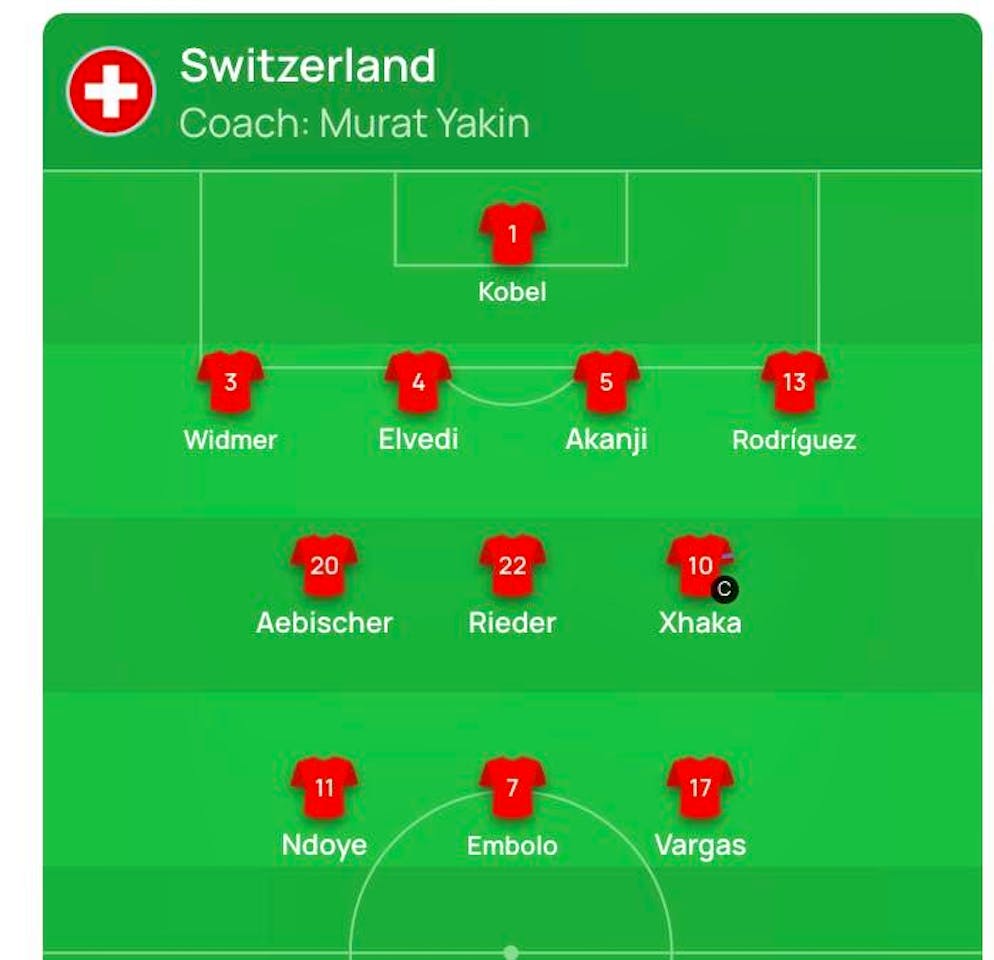 Apart from that, Yakin has made no other changes compared to the start of qualifying. Gregor Kobel will be in goal, with Silvan Widmer, Nico Elvedi, Manuel Akanji and Ricardo Rodriguez forming the back four. Behind striker Breel Embolo, the back three of Dan Ndoye, Fabian Rieder and Ruben Vargas will once again provide a threat.