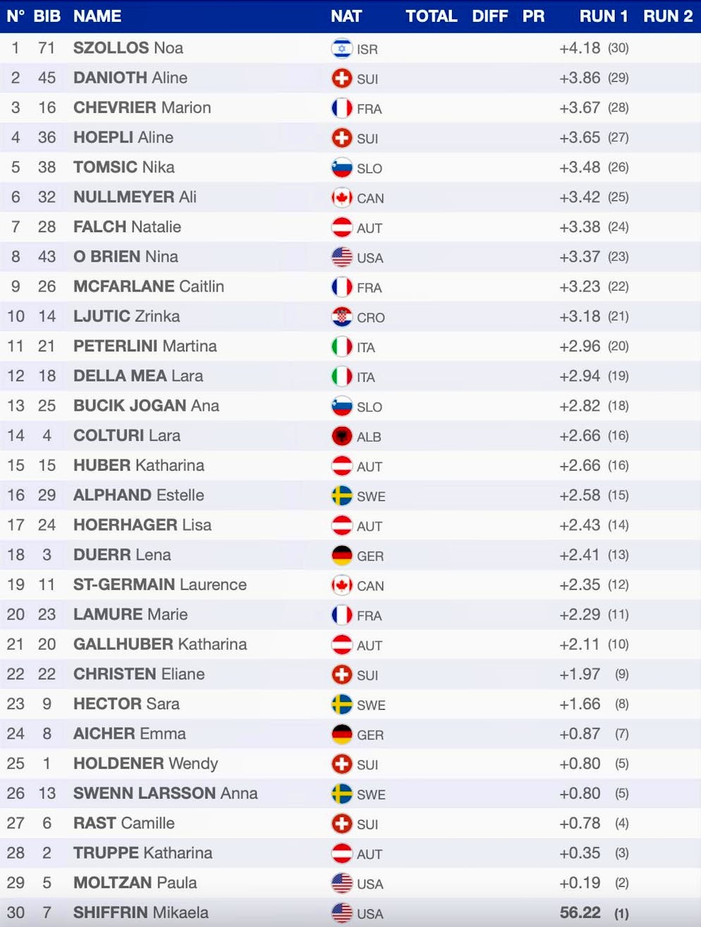 Aline Höpli (18th) and Aline Danioth (25th) secured points for the second time this season. The 24-year-old Höpli from eastern Switzerland improved by nine places in the decision, while Danioth from central Switzerland improved by four.