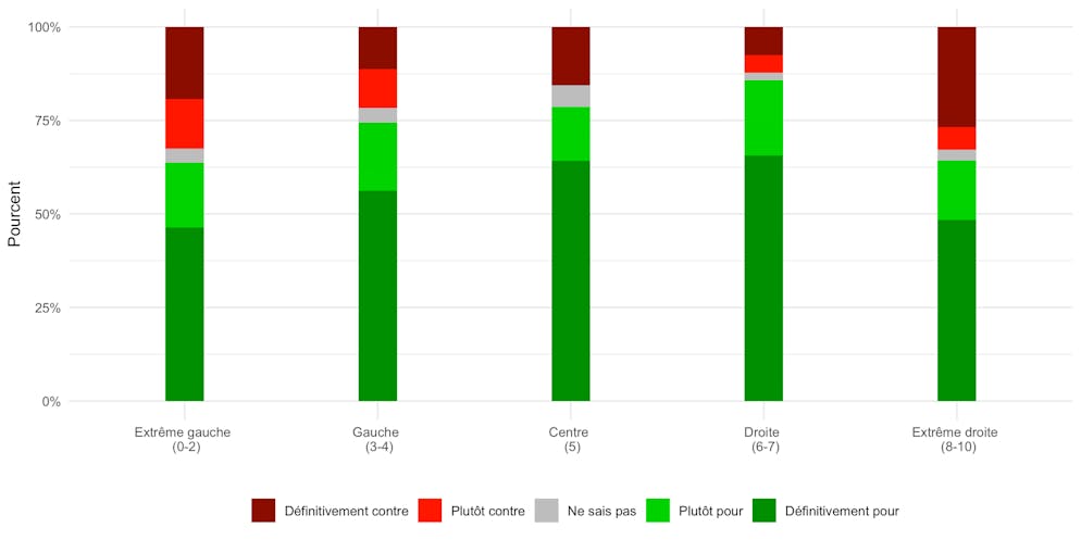 Il est intéressant de relever que les intentions de vote sur les projets de loi s'expliquent moins par le positionnement des personnes interrogées sur l'échelle gauche-droite que ce n'est habituellement le cas.