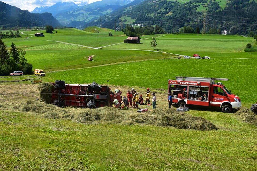 Un 58enne, a bordo di un carro carico di fieno, ha perso il controllo del mezzo e si è ribaltato lunedì a Castrisch, nei Grigioni.