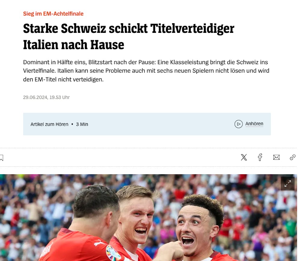 Der Spiegel (Germania): «Una forte Svizzera manda a casa i campioni in carica dell'Italia»