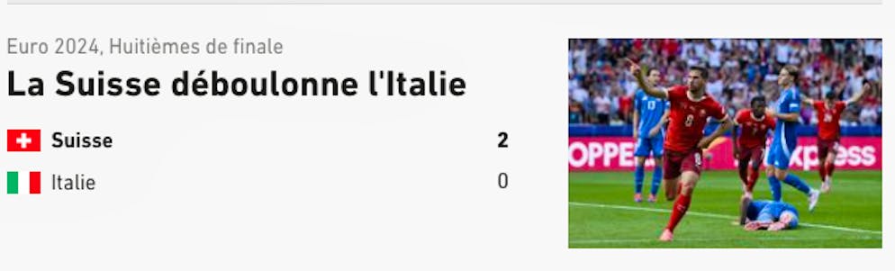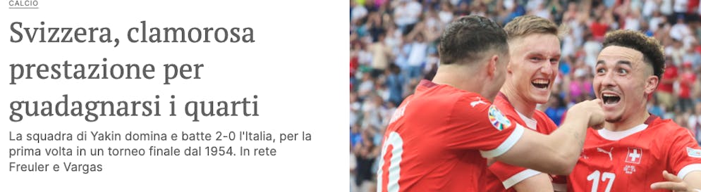 Le Matin.ch: «La Svizzera batte l'Italia agli ottavi: l'avventura continua!»