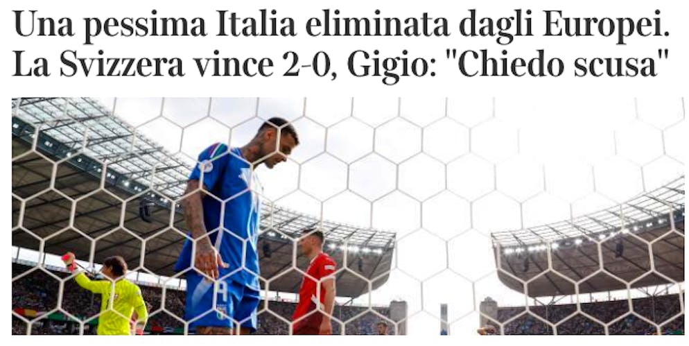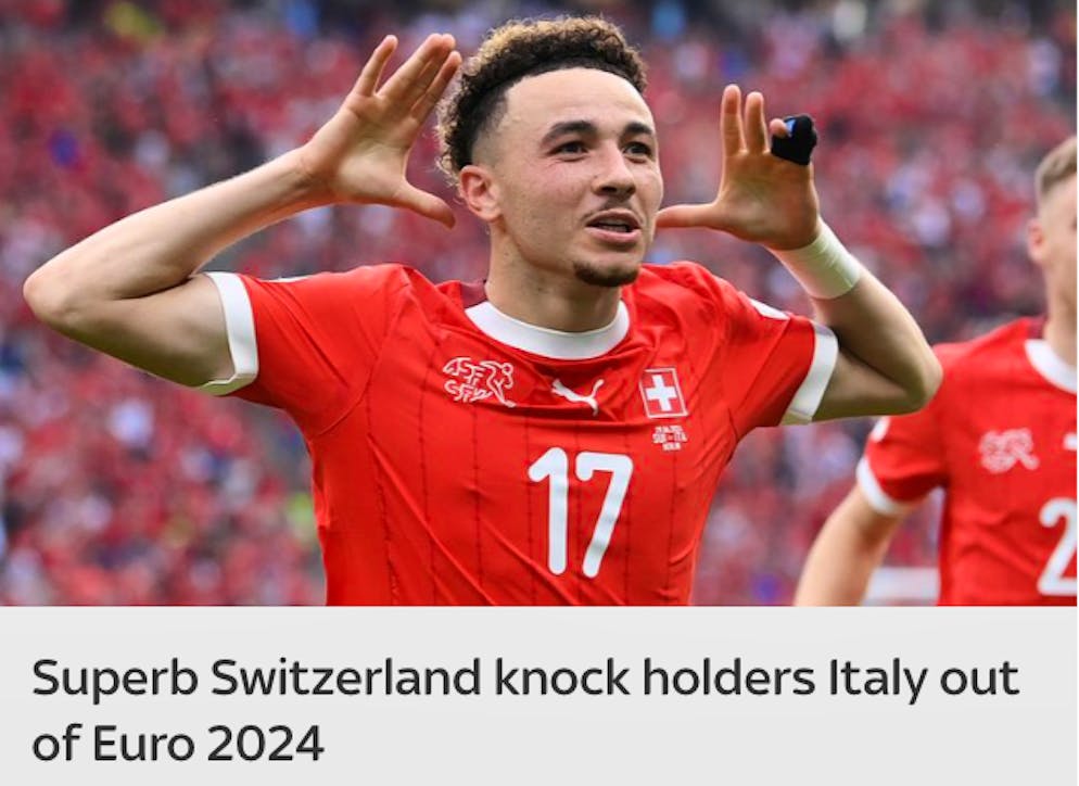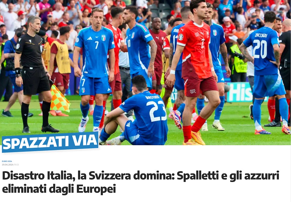Mirror (Inghilterra): «Arrivederci! La Svizzera smorza i malcapitati campioni in carica italiani, immaginando un potenziale quarto di finale contro l'Inghilterra»