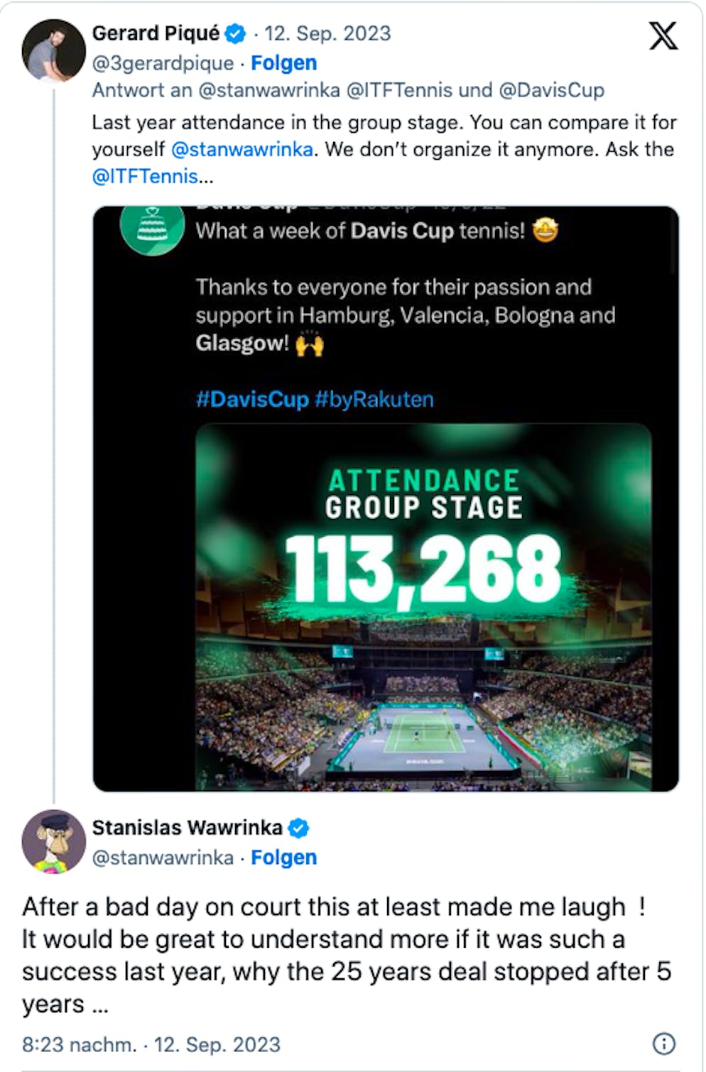 - Stan Wawrinka ha criticato l'organizzazione della Coppa Davis, e Gerard Piqué, postando un video dello stadio quasi deserto.